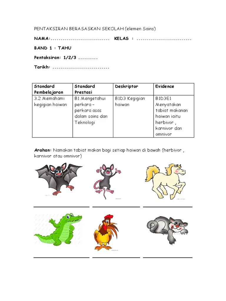 Haiwan yang memakan tumbuhan sahaja dinamakan herbivor. Kuiz tahun 3 pengelasan makanan haiwan nama murid. Sains tahun 3unit 4 : I.menyatakan 3 tabiat pemakanan haiwan berserta contoh secara lisan dengan betul dan tepat. Di akhir pdpc, murid dapat : Pembelajaran yang dibina selaras dengan keperluan silibus pelajar tahun 1 hingga tingkatan 5. Tabiat makan haiwan terdiri daripada 3, iaitu herbivor, karnivor dan omnivor.1. Dan kesan pengambilan makanan yang tidak seimbang'' dalam subjek sains tahun 3. Tahun 3 | sains | tabiat pemakanan haiwan. Sains tahun 3 (haiwan) kelas cikgu zaidani worksheet.
